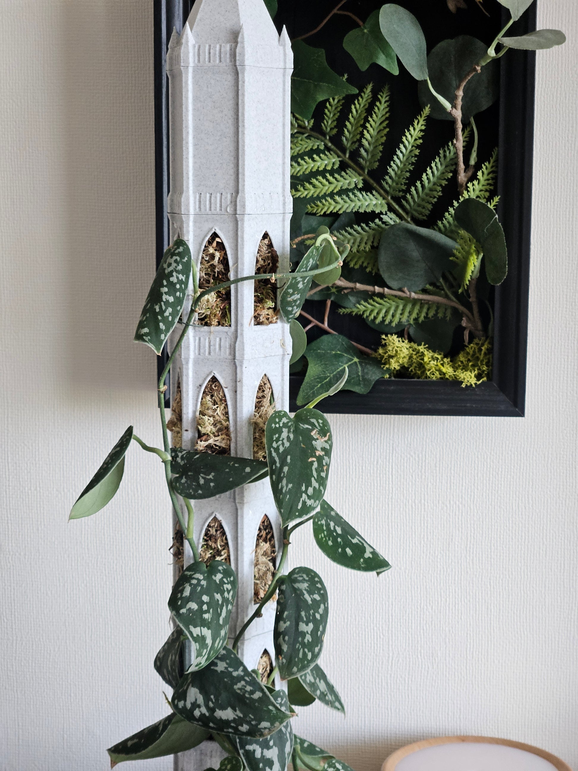 Elevate your plant display with this striking Gothic Cathedral Moss Pole — where form meets function in dramatic style. Inspired by the soaring arches and intricate spires of medieval cathedrals, this unique moss pole is more than just a support for climbing plants; it’s a sculptural centerpiece for any indoor jungle.